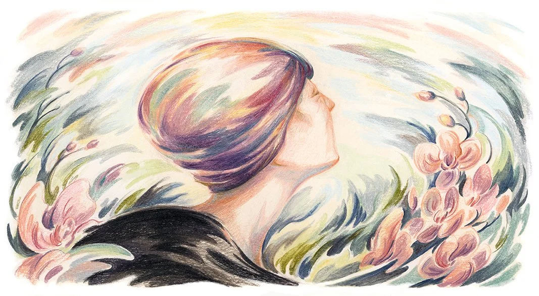 Portrait of Edna St. Vincent Millay enjoying the wildlife around her farm. Art Direction: Jeremy Lybarger.